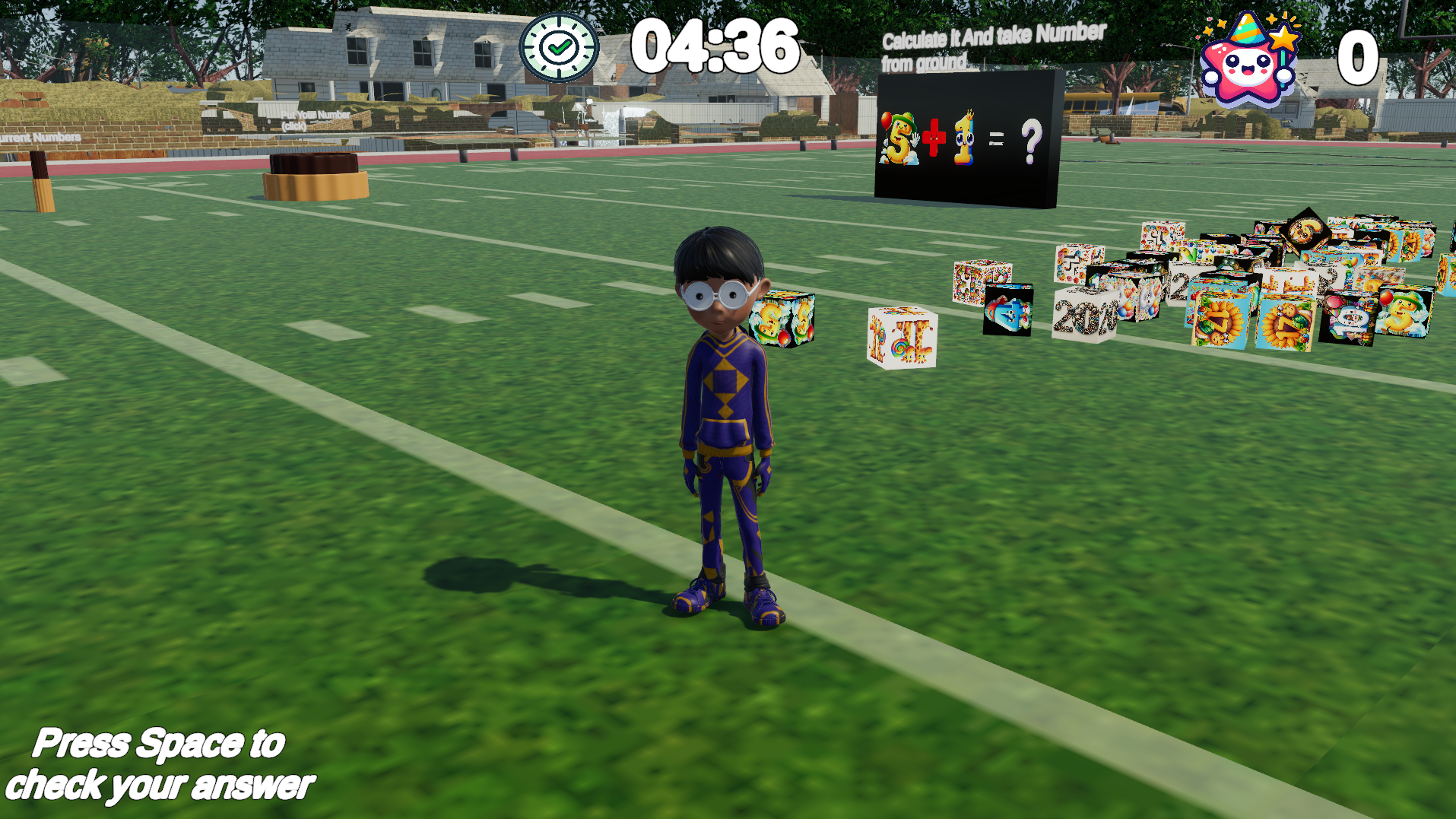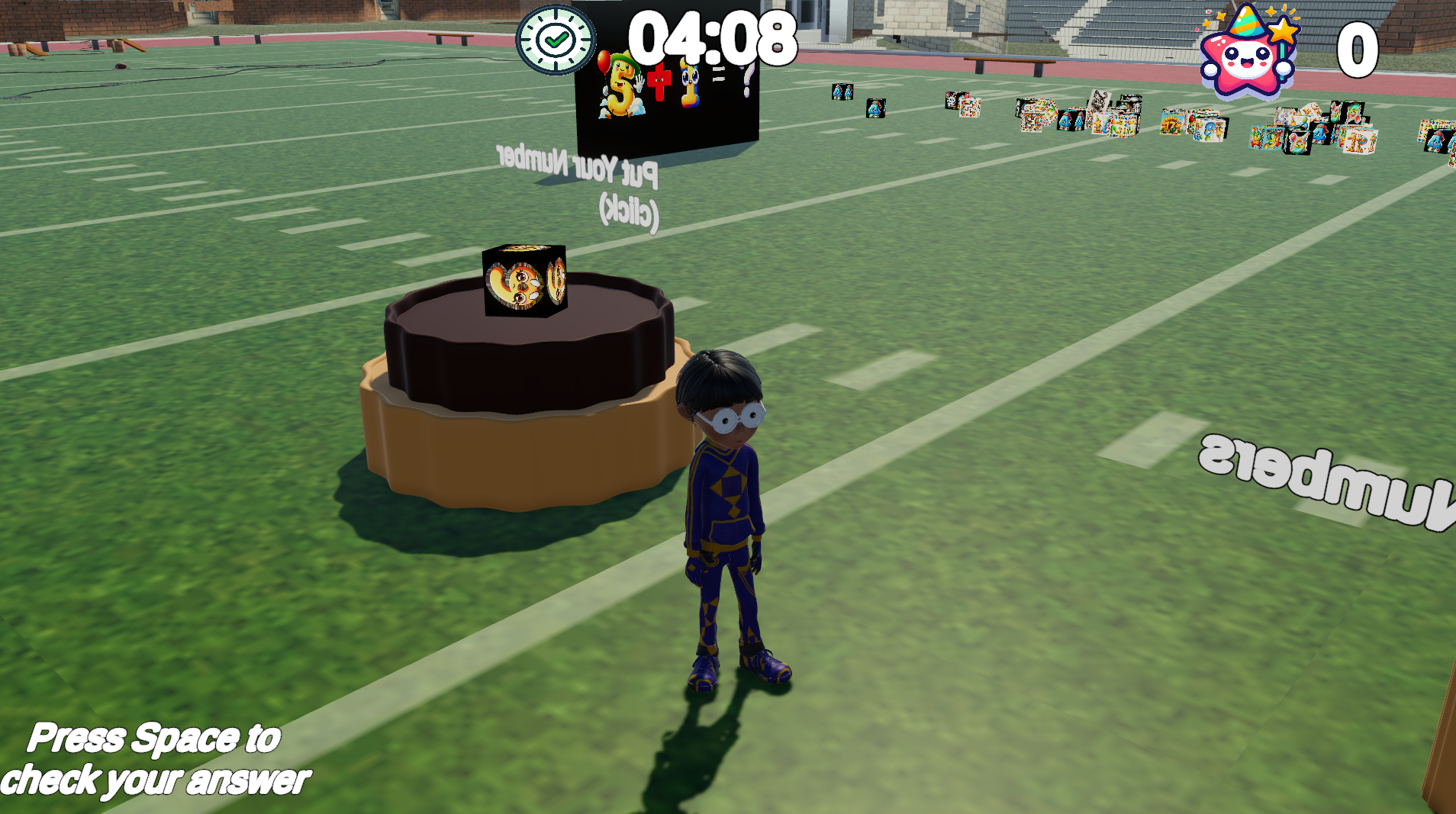 See two numbers on the board, grab the correct number blocks, and place them in the right spot to solve the addition problem. Test your math skills in a 3D environment while having fun!